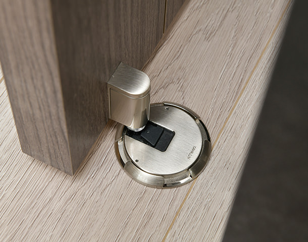 ドアが壁にぶつかってキズをつけたり、急に閉まったりしないよう、ドアキャッチャーを設置しています。