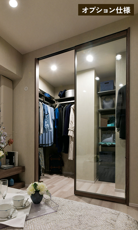 コートなど長尺の衣類やかさばるアイテムもしっかりと収納できる機能的なシステムクロゼット。