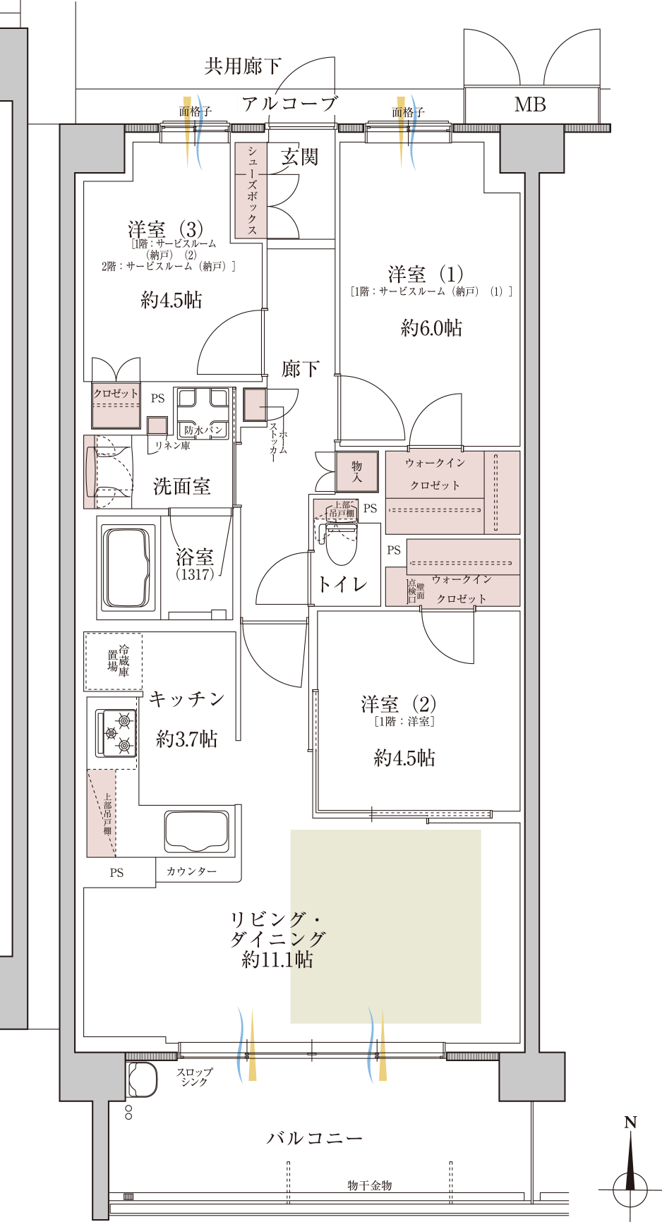 2LDK+S[サービスルーム]+2WIC